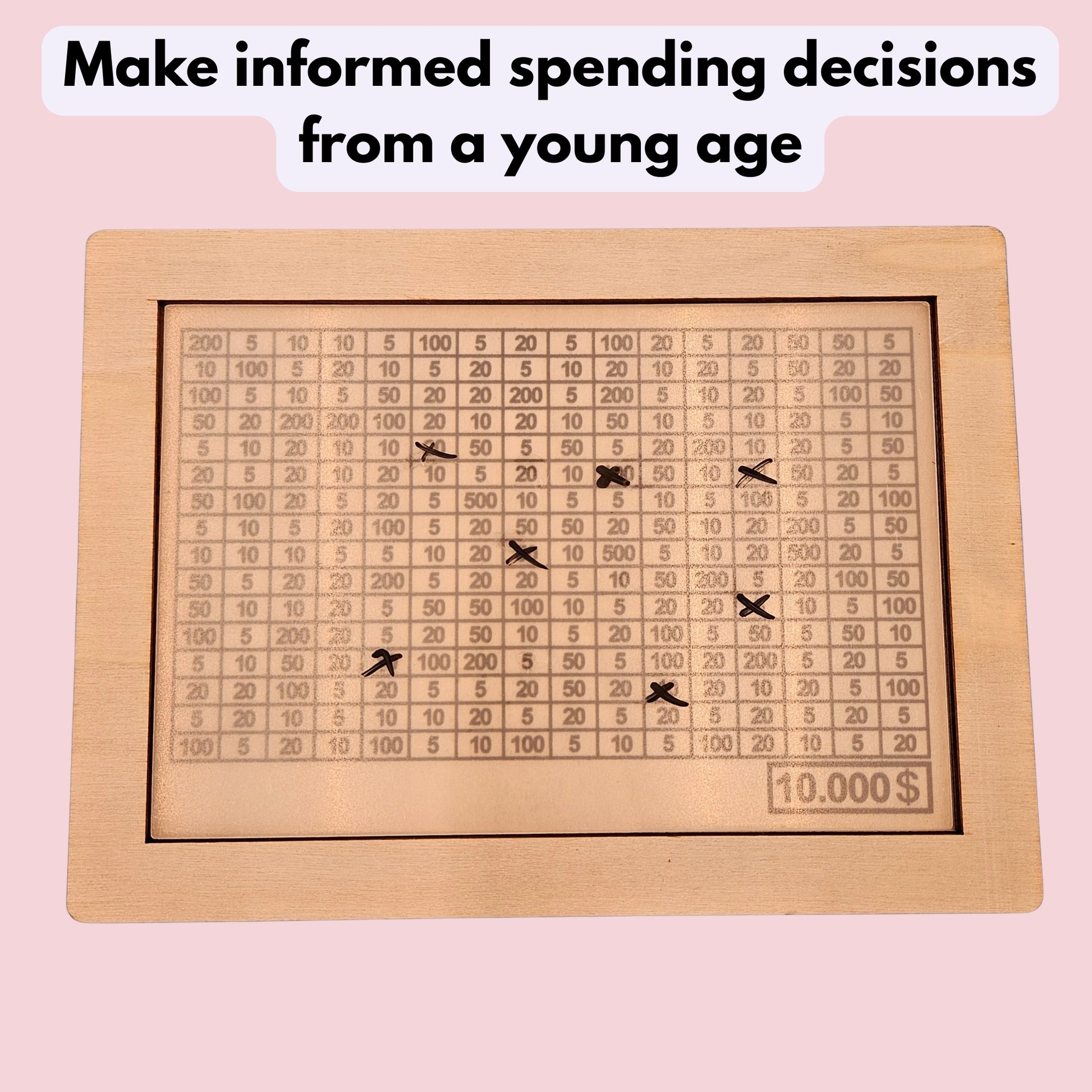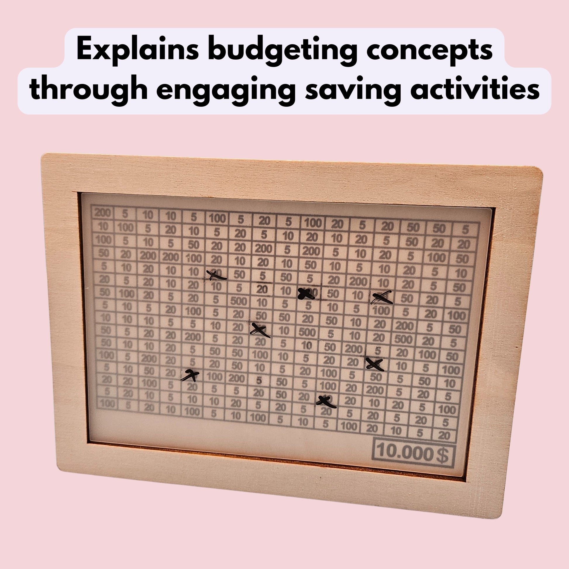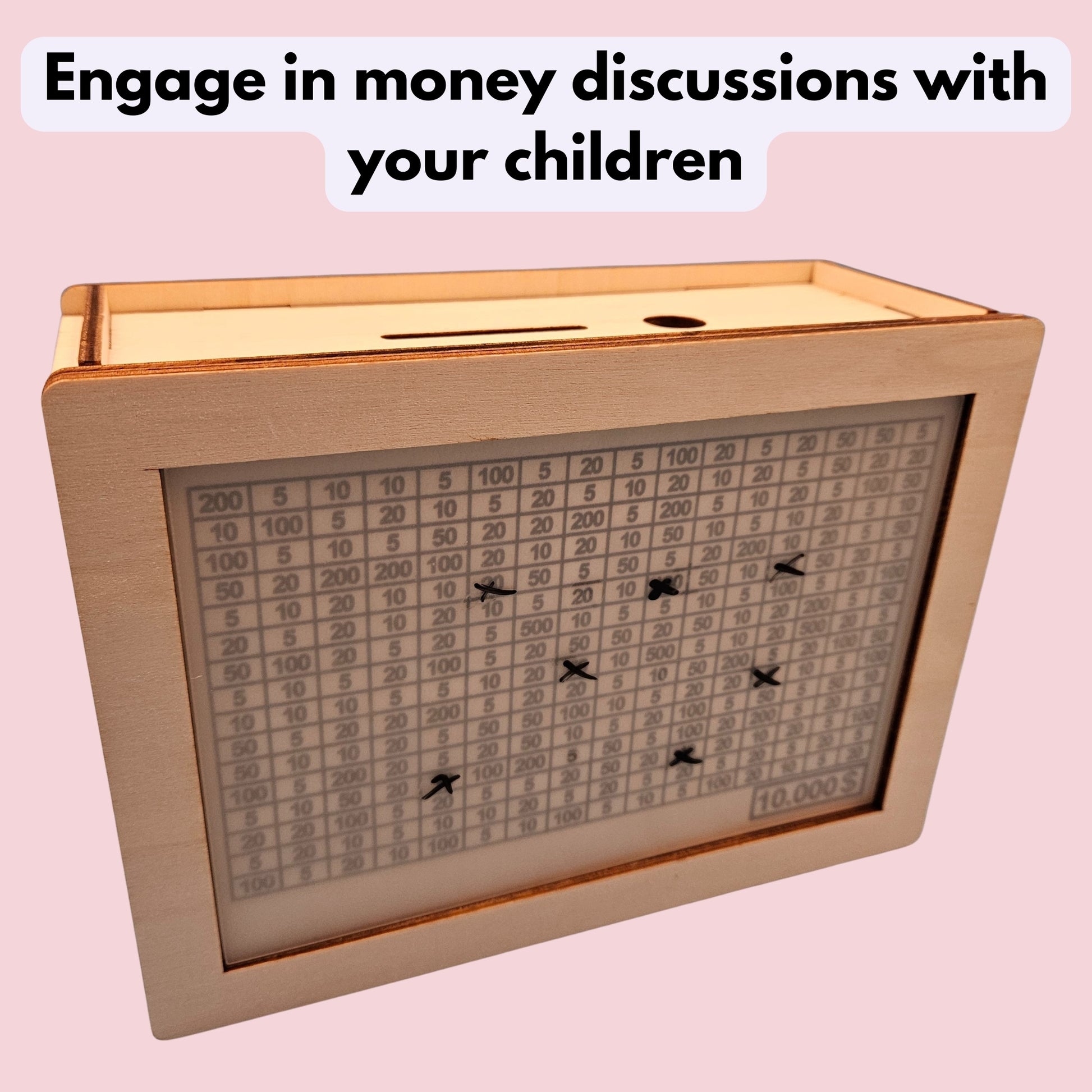 We recommend that children use chore/to-do list charts to earn rewards and set budgeting goals with this saving box.